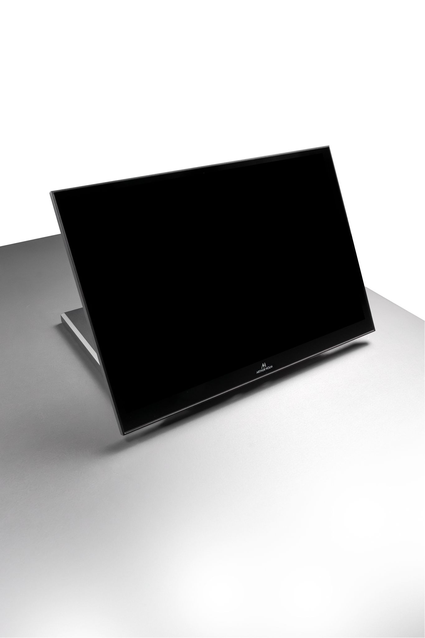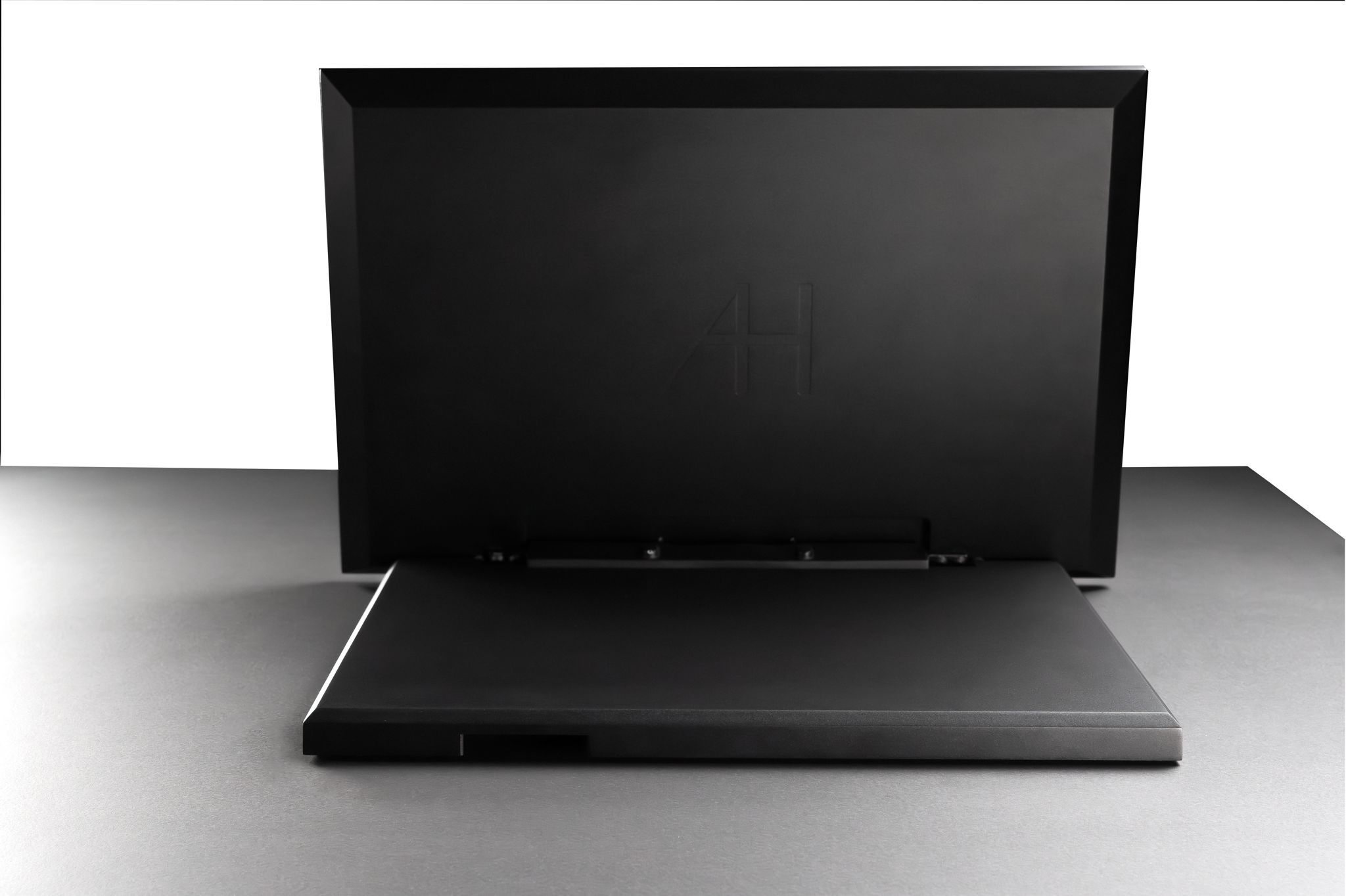 Le AH1 est un moniteur de table en aluminium pliable manuellement avec une base en fonte. Le AH1 ne nécessite pas de modifications structurelles de la table et sa position entièrement réglable manuellement garantit une vue parfaite de la salle et des autres participants à la réunion.