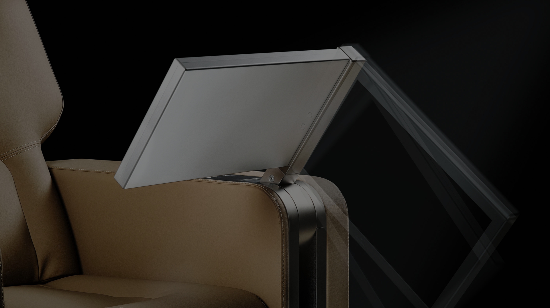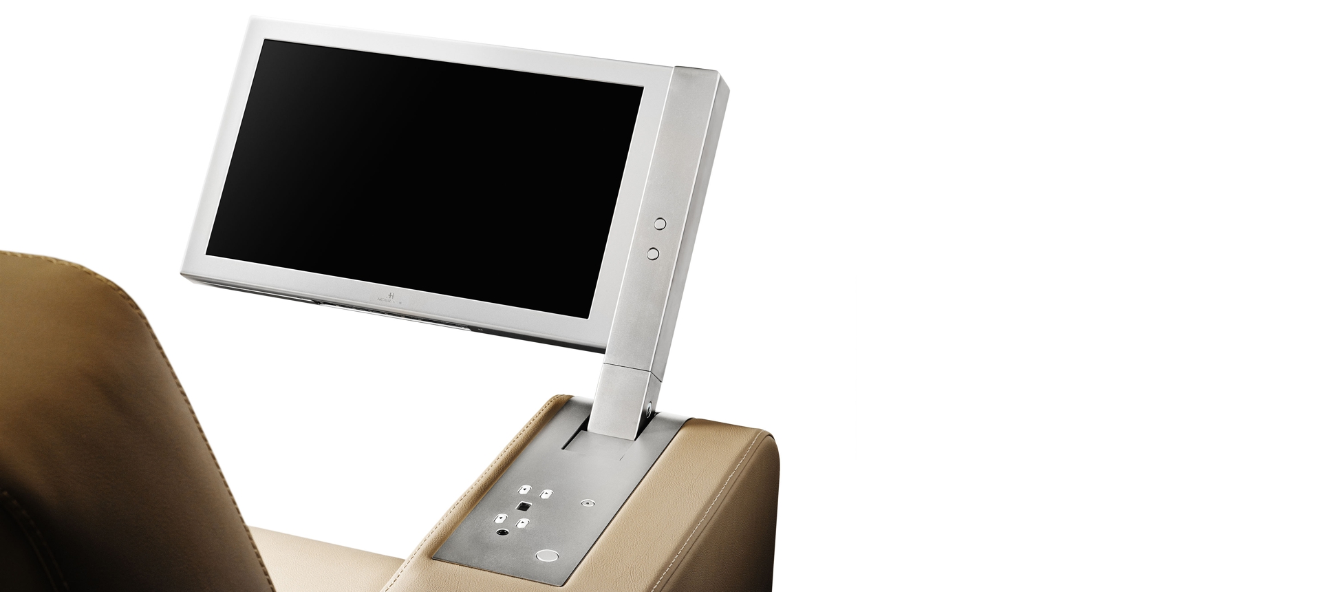 Le DynamicChairDisplay est un moniteur motorisé rétractable en aluminium à intégrer dans les accoudoirs des fauteuils. Le moniteur n’est visible que lorsqu’il est utilisé, et il est rangé en toute sécurité dans l’accoudoir lorsqu’il n’est pas nécessaire. Cet élégant moniteur en aluminium permet un mouvement d’extraction vertical automatique, ainsi qu’une rotation manuelle supplémentaire vers l’utilisateur, suivie d’un réglage motorisé de la position. L’ensemble de la solution est intégré dans un bloc compact, très facile à installer.